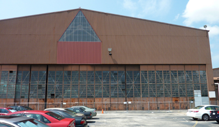 The construction crews have been working on both the inside and outside of Historic Hangar 2 for the last few weeks. Here's a photo from a month ago: