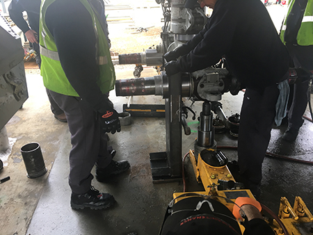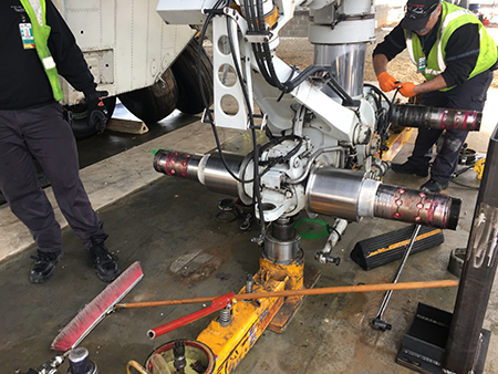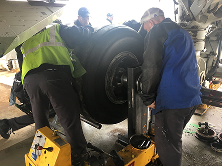 Once this process was completed for all eighteen stands, the stands were sent back to Delta TechOps for them to be welded completely, blasted and painted. In less than a week all stands came back and ready for their final installation. This is how the stands looked as they were moved onto the nose gear: